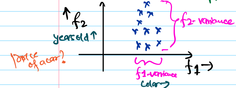 we will rotate the f1-axis in the direction of maximum spread/variance of data, i.e, f1’-axis and then we can drop f2’-axis, which is perpendicular to f1’-axis.